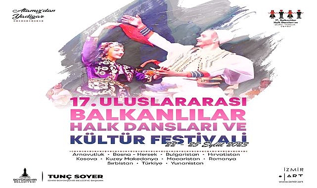 17. Uluslararası Balkanlılar Halk Dansları ve Kültür Festivali 22-25 Eylül tarihleri arasında İzmir’de başlıyor. Festivale 9 ülkeden katılan halk dansları ekipleri, İzmir’in farklı yerlerinde gösteriler gerçekleştirecek