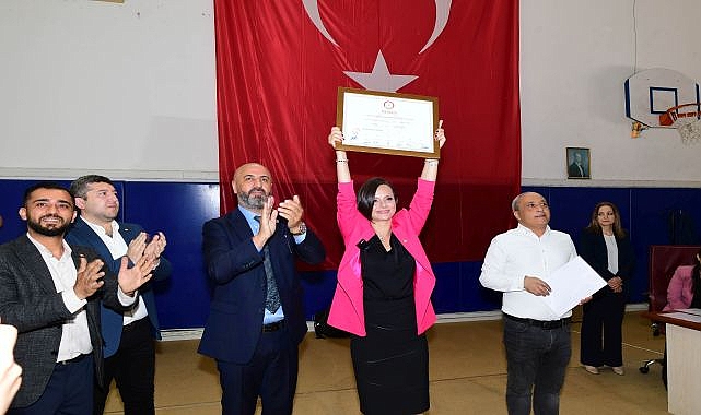 31 Mart Yerel Seçimleri’nde büyük bir başarıya imza atarak seçimleri kazanan ve Karabağlar’ın ilk kadın belediye başkanı olma unvanını elde eden Çevre Yüksek Mühendisi Helil Kınay, CHP’li 22 meclis üyesi ile birlikte mazbatasını Karabağlar İlçe Seçim Kurulu’ndan aldı