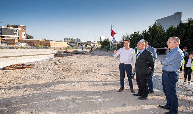 İzmir Büyükşehir Belediyesi, Çiğli Aydınlıkevler Mahallesi’nde Cemil Meriç Bulvarı ile 6779 sokak arasında araç trafiğini rahatlatacak dere üzeri taşıt köprüsü imalatını sürdürüyor. Çalışmaları yerinde inceleyen Başkan Soyer, köprü ve kavşak düzenlemesiyle birlikte bölgedeki trafiği rahatlatacaklarını söyledi