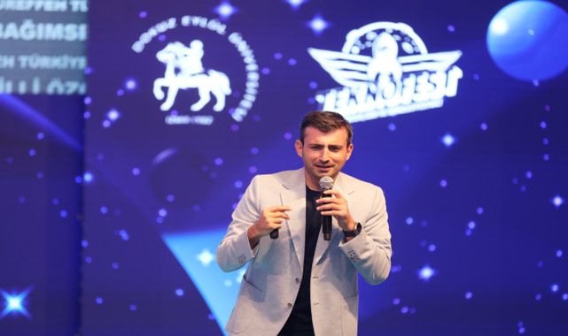 Türkiye’nin ilk ve tek havacılık ve uzay teknolojileri Festivali’ne bir gün kala, Teknofest Yönetim Kurulu Başkanı ve Türkiye’nin ilk milli SİHA-İHA sistemlerinin mimarı Selçuk Bayraktar, Dokuz Eylül Üniversitesi’nde düzenlenen Milli Teknoloji Hamlesi’nin Bayraktarı Selçuk Bayraktar DEÜ’de’ isimli etkinliğe katıldı. Teknofest Yönetim Kurulu Başkanı Selçuk Bayraktar, DEÜ Rektörü Prof. Dr. Nükhet Hotar, AK Parti Milletvekili Eyüp Kadir İnan, DEÜ Rektör Yardımcıları ve akademisyenler ile öğrenciler katıldı. Sabancı Kültür Sarayı’ndaki etkinlik DEÜ Konservatuvar dinletisi ile başladı. Ardından ‘Milli Teknoloji Hamlesi’nin Bayraktarı: Selçuk Bayraktar’ adlı kısa film ve DEÜ Elektronik Malzemeler Üretim ve Uygulama Merkezi’nde (EMUM) Selçuk Bayraktar ismi verilen İnce Film Laboratuvarı tanıtım videosu gösterildi. İzmir ve Ege Bölgesi’nin İlk ‘Formula Student’ aracı ‘DFR-1 Efes’i üreten, ilk yarışı olan “Formula Student Romania 2023’ten 3 ödülle dönen IEEE DEU PELS Formula Racing Team ve DEÜ Mühendislik Fakültesi’nde 2003’de üretilip güncellenen elektrikli araçları üreten Solaris Güneş Arabaları ekibi ile sohbet edildi. Rektör Prof. Dr. Hotar, Selçuk Bayraktar’ın milli savunma sanayinin gelişmesinde ve bugünlere gelmesinde öncülük eden Cumhurbaşkanı Recep Tayyip Erdoğan’ın çizdiği vizyonu takip eden isim olduğunu belirterek, “Sayın Bayraktar, Türkiye’nin Milli Teknoloji Hamlesi’nin ve Türkiye Yüzyılı’nın emektarıdır. Toplantımızın amacı geçmişten günümüze savunma sanayimize emek veren gizli kahramanlara minnetimizi sunmak ve Teknofest, Kızılelma, Akıncı, Bayraktar’ın ve bunların ardındaki gerçekliğin bilinmesine aracılık etmek. Bu etkinlik, aynı zamanda Türkiye Yüzyılına güç ve yön veren düşüncelerin anlaşılmasını sağlamaktır” diye konuştu.