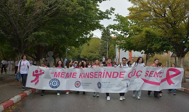“Pembe Tişörtlerinizle Yürüyüşümüze Bekliyoruz” sloganı ile Ege Üniversitesi Tıp Fakültesi Hastanesi’nde başlayarak, Kampüs Öğrenci Dekanlığında sona eren yürüyüşte katılımcılar meme kanseri konusunda farkındalık oluşturmak amacıyla “Meme Kanserinde Güç Sende” yazılı pankart taşıdılar. Katılımın yoğun olduğu etkinlikte, meme kanserinde dikkat çekmek amacıyla pembe kurdele dağıtıldı.