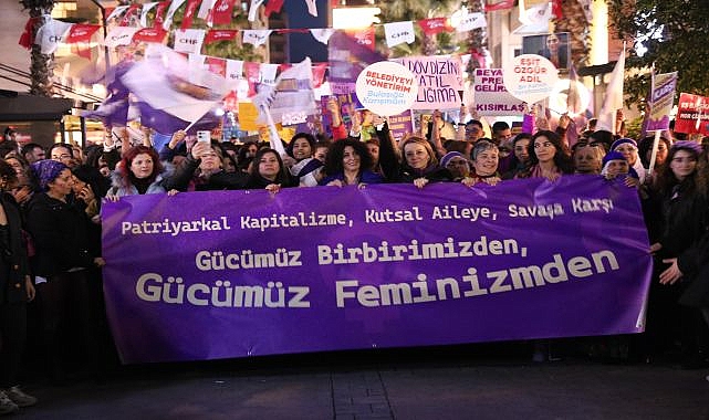 CHP Konak Adayı Nilüfer Çınarlı Mutlu, 8 Mart Dünya Kadınlar Günü’nde evde, işte ve sokakta kadınlarla bir araya geldi. 8 Mart finalini Feminist Gece Yürüyüşü ile yapan Mutlu'nun elinde taşıdığı "Belediyeyi yönetirim bulaşığı karışmam" yazılı döviz büyük beğeni topladı