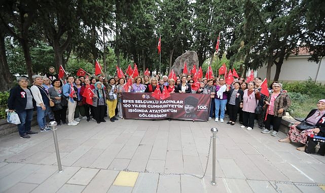 Efes Selçuklu kadınlar Cumhuriyetin 100. yılı etkinlikleri kapsamında Atatürk’ün annesi Zübeyde Hanım’ın Karşıyaka’da bulunan anıt mezarına ziyarette bulunarak çiçek bıraktı