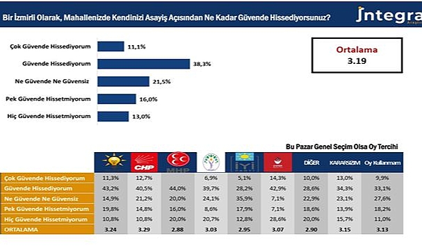 İntegral Araştırma tarafından yapılan açıklamada şu görüşlere yer verildi: İzmir, yerel yönetim performansı ile toplumsal beklenti arasındaki makasın tehlikeli biçimde açıldığı bir "Eşik noktasına" doğru ilerlemektedir. Özellikle 2018’den bu yana yaşam memnuniyetinde gözlenen 32 puanlık radikal düşüş, kentin kronikleşen çöp, yol ve altyapı gibi temel belediye hizmetlerindeki yetersizliklerle birleştiğinde, İzmirlilik kimliğinin taşıyıcı kolonu olan "Konforlu yaşam" algısının ciddi bir erozyona uğradığını göstermektedir. Şehrin en önemli sorunlarının %84 oranında yerel yönetim odaklı olması ve "Sorun yok" diyenlerin oranının %4,7 gibi marjinal bir seviyeye gerilemesi, önümüzdeki dönemde seçmen davranışında ideolojik bağlılıktan ziyade "Hizmet odaklı bir kopuş" yaşanma ihtimalini güçlendirmektedir.