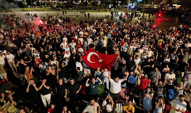 İzmirli futbolseverler, Türkiye A Milli Futbol Takımı’nın Çekya ile karşılaşmasını, İzmir Büyükşehir Belediyesi’nin kurduğu dev ekranlardan takip etti. Binlerce taraftar, ay yıldızlı takımın galibiyetiyle sonuçlanan karşılaşmayı soluksuz izledi. Aynı anda sevinip aynı anda üzülen İzmirliler, maç sonucunu da şarkılar ve danslar eşliğinde dakikalarca kutladı.