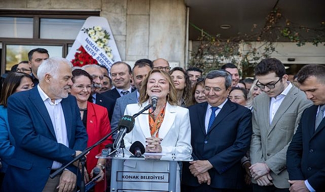 Belediye binası önünde düzenlenen törenin ardından devir teslim, Konak Belediyesi başkanlık makamında gerçekleştirildi.