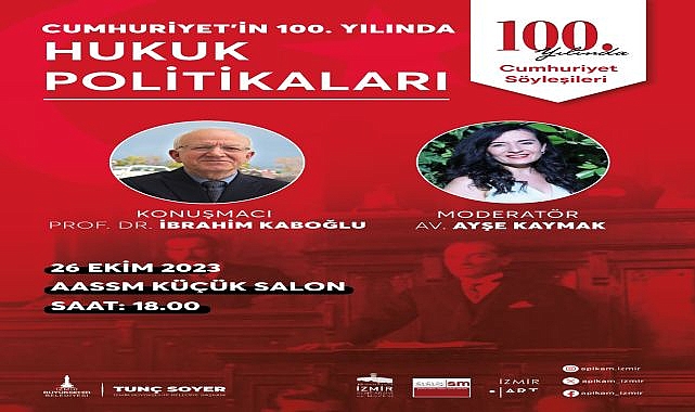 İzmir Büyükşehir Belediyesi, Cumhuriyet’in 100. yılı kutlamaları kapsamında, “Cumhuriyet Söyleşileri” düzenliyor. 5 ay sürecek söyleşilerin ilk konuğu 26 Ekim’de Prof. Dr. İbrahim Özden Kaboğlu olacak
