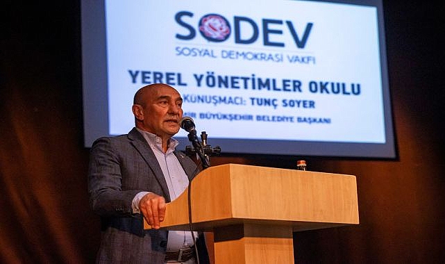 İzmir Büyükşehir Belediye Başkanı Tunç Soyer, Sosyal Demokrasi Vakfı'nın (SODEV) İzmir Sanat'ta düzenlediği Yerel Yönetimler Okulu Eğitim Programı'na katıldı. Kapanış konuşmasını yapan Başkan Soyer, 2019’da göreve geldiğinden bu yana yaptığı çalışmaları ve hedeflerini anlattı. Etkinlikte, geçmiş yıllarda devlet, dışişleri bakanlıkları, başbakan yardımcılığı ve Ankara Büyükşehir Belediye Başkanlığı görevlerini yürüten Murat Karayalçın, CHP 26. Dönem Milletvekili Zeynep Altıok, Sabancı Üniversitesi Öğretim Üyesi Emeritus Prof. Dr. Korel Göymen, akademisyen, bürokrat ve vatandaşlar takip etti. Program sonunda eğitime katılanlara sertifika verildi. 2019 yılında BM’nin 17 sürdürülebilir kalkınma hedefi doğrultusunda stratejik önceliklerini belirlediklerini belirten Başkan Tunç Soyer, ekoloji olmadan ekonominin iyi olamayacağına işaret etti. Doğayla iç içe, barışık ve doğanın haklarını koruyan bir yeni tarife ihtiyaç olduğunu söyleyen Başkan Soyer, “Gezi'den beri, Kaz Dağları'nda, Akbelen'de, birçok yerde devam eden mücadelelere de yeni bir perspektif ve içerik getirilebilir diye ümit ediyorum. Doğayla uyumun çok temel başka bakış açısı gerektirdiğini ifade etmek istiyorum” dedi. Bayındır'da hayata geçirilen Süt İşleme Tesisi ile ilgili konuşan Başkan Soyer, “Biz Tarım Bakanlığı değiliz, Büyükşehir Belediyesiyiz. Ama bu şehirde tarımsal üretimin tasarlanması için, doğru tercihlerin yapılması için bir rol üstlenebileceğimizi gördük. Fabrika o nedenle aslında bizim kalemiz. Deniyor ya her fabrika kaledir, bu o kalelerin en güçlülerinden biri. Biz hem fiyatı regüle ediyoruz. Hem küçükbaş hayvancılığa yönlendirmiş oluyoruz, hem büyükbaş hayvancılığı böylece biraz daha ötelemiş oluyoruz. Tarihimizi bilsek büyükbaş doğuda yapılır, burada sadece küçükbaş yapılırdı. Kısa vadeli çıkarlar ve karlar uğruna bu hikayeyi bitirdik. 50 senede bitirdik üstelik. Bu bir kader değil diye düşünüyoruz. Kurduğumuz bir merkez var, bu merkez havza bazında ne üretim yapılabileceğine dair üreticilerimize hizmet veriyor. Bir tarımsal araştırma merkezi bu” dedi. Başka bir dünyanın, başka bir yerel yönetimin, başka bir memleketin mümkün olduğunu göstermeye çalıştıklarını belirten Başkan Soyer, “İçinde yaşadığımız şeyin ne bir mecburiyet, ne de bir kader olmadığını biliyoruz. Yerelden başlayarak değişebileceğine inanıyoruz. Nazım'ın dediği gibi; '70'inde bile zeytin dikeceksin, hem de öyle çoluk çocuğa kalacak diye değil hayata inandığından ölüme inat' diyor. Yürüttüğümüz bütün bu hikâyenin arkasındaki ana cümle budur. Hayata inanıyoruz daha güzel bir hayatın mümkün olduğunu biliyoruz” diye konuştu.