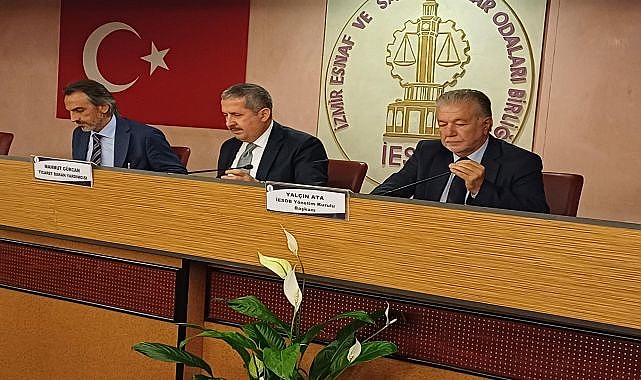 İzmir Esnaf ve Sanatkarlar Odaları Birliği'nde düzenlenen istişare toplantısında Ticaret Bakan Yardımcısı Mahmut Gürcan ile Esnaf Sanatkar ve Kooperatifçilik Genel Müdürü Taha Enes Şener, İzmirli esnafın sorunlarını dinledi