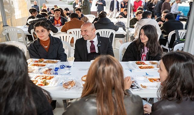 İzmir Büyükşehir Belediye Başkanı Tunç Soyer, İzmir Kâtip Çelebi Üniversitesi’nde gençlerle akşam yemeği yedi. Büyükşehir Belediyesi’nin ekonomik krize karşı üniversite öğrencilerine nefes aldıran ücretsiz yemek dağıtımına katılan Başkan Soyer, gençlerle sohbet etti. Eğitimden siyasete soruları cevaplayan Soyer, öğrencilerle hatıra fotoğrafı çekildi