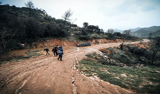 İzmir Büyükşehir Belediyesi, olumsuz hava koşullarının yol açtığı risklere karşı sahadaki müdahale ve önlem çalışmalarını aralıksız sürdürüyor. Akşam 19.40 sıralarında Karşıyaka Yamanlar Mesire Alanı’nda, arazide mahsur kalan bir vatandaş olduğu yönünde ihbar alındı. İhbar üzerine İzmir Büyükşehir Belediyesi İtfaiye Dairesi Başkanlığı ekipleri ile AFAD hızla bölgeye sevk edildi. Kurtarma aracı ve 4 personel ile olay yerine ulaşan itfaiye ekipleri, mahsur kalan vatandaşla iletişim kurarak arazideki konumunu belirledi. Arazi yapısının yoğun çamur ve balçık olması nedeniyle arama ve kurtarma çalışmaları yaya olarak sürdürüldü. Yaklaşık 2 kilometrelik zorlu yürüyüşün ardından, off-road yaptığı sırada aniden bastıran yağışın dere yatağındaki su seviyesini yükseltmesi sonucu aracı çamura saplanan kadın sürücüye ulaşıldı. Ekipler tarafından güvenli alana çıkarılan vatandaşın sağlık durumunun iyi olduğu belirlendi.İkinci araçtaki anne ve çocuk da kurtarıldı